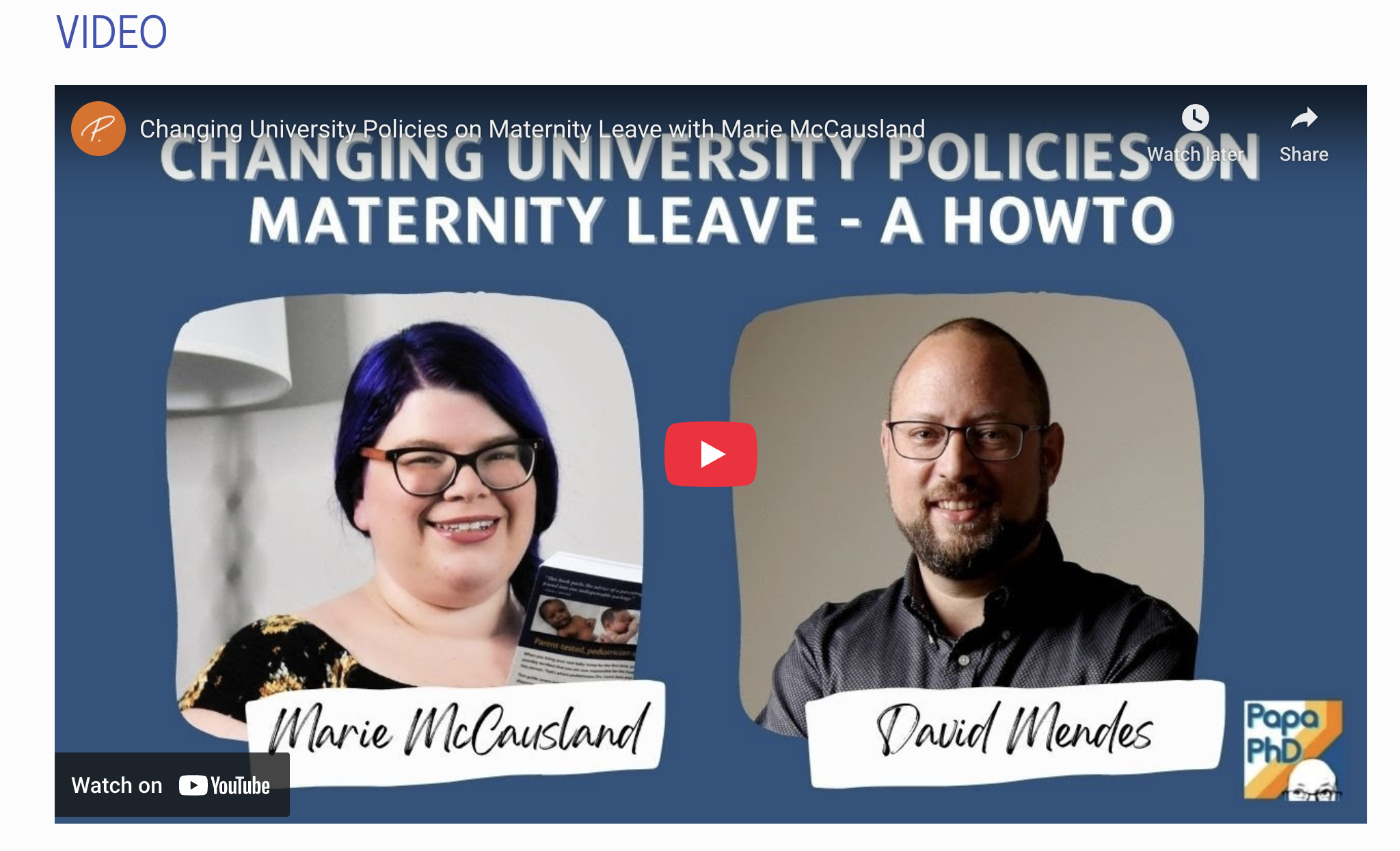 Featured guest discussing maternal leave, postpartum recovery, and the need for institutional and university policy changes to better support parents in academia.